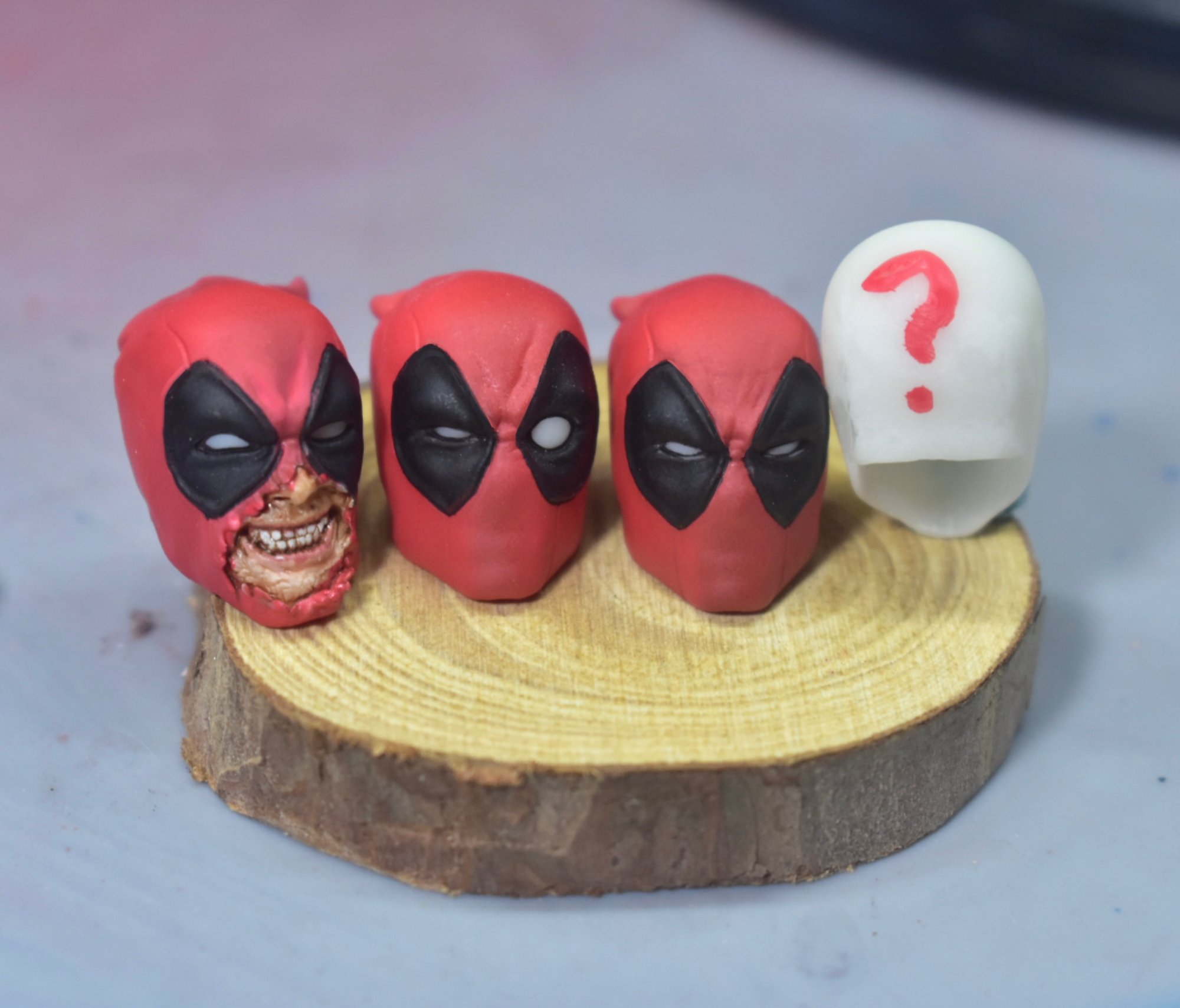 - Comes with 3 different alternate Deadpool custom Headsculpts designs